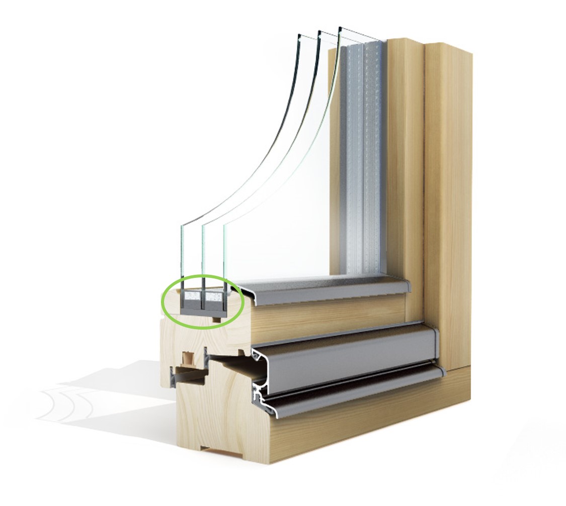 Vpliv vrste distančnika na toplotno prehodnost 1,23 × 1,48 m velikega okna (Uw) s troslojno zasteklitvijo