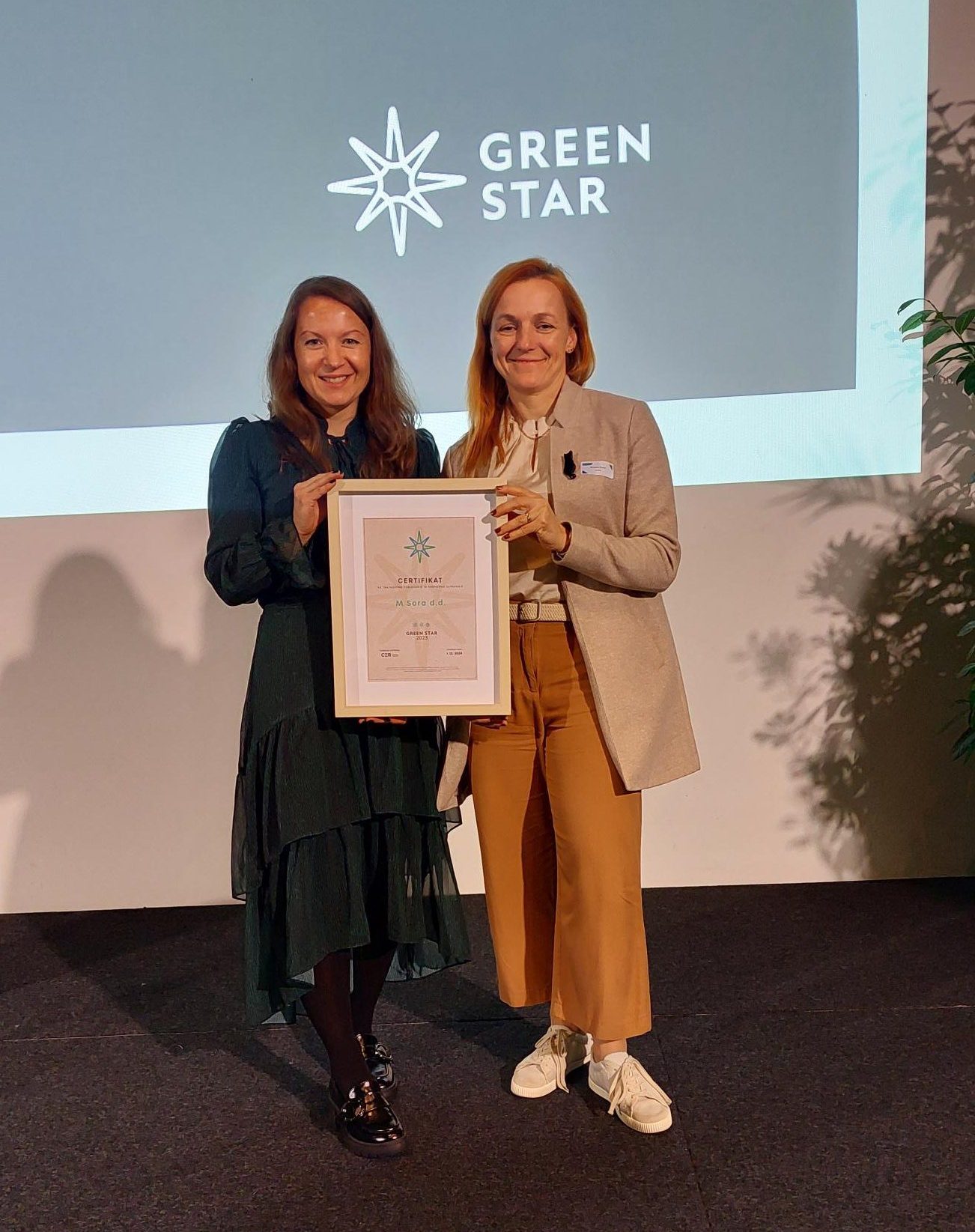 Green Star certifikat, prvi tovrstni trajnostni certifikat v Sloveniji, je namenjen prepoznavanju podjetij, ki z vključevanjem trajnostnih praks ustvarjajo pozitivne spremembe. Certifikat M Sori priznava uspešno vključitev trajnostnih načel v naše poslovanje ter konkretne korake na področju podnebnega ukrepanja.