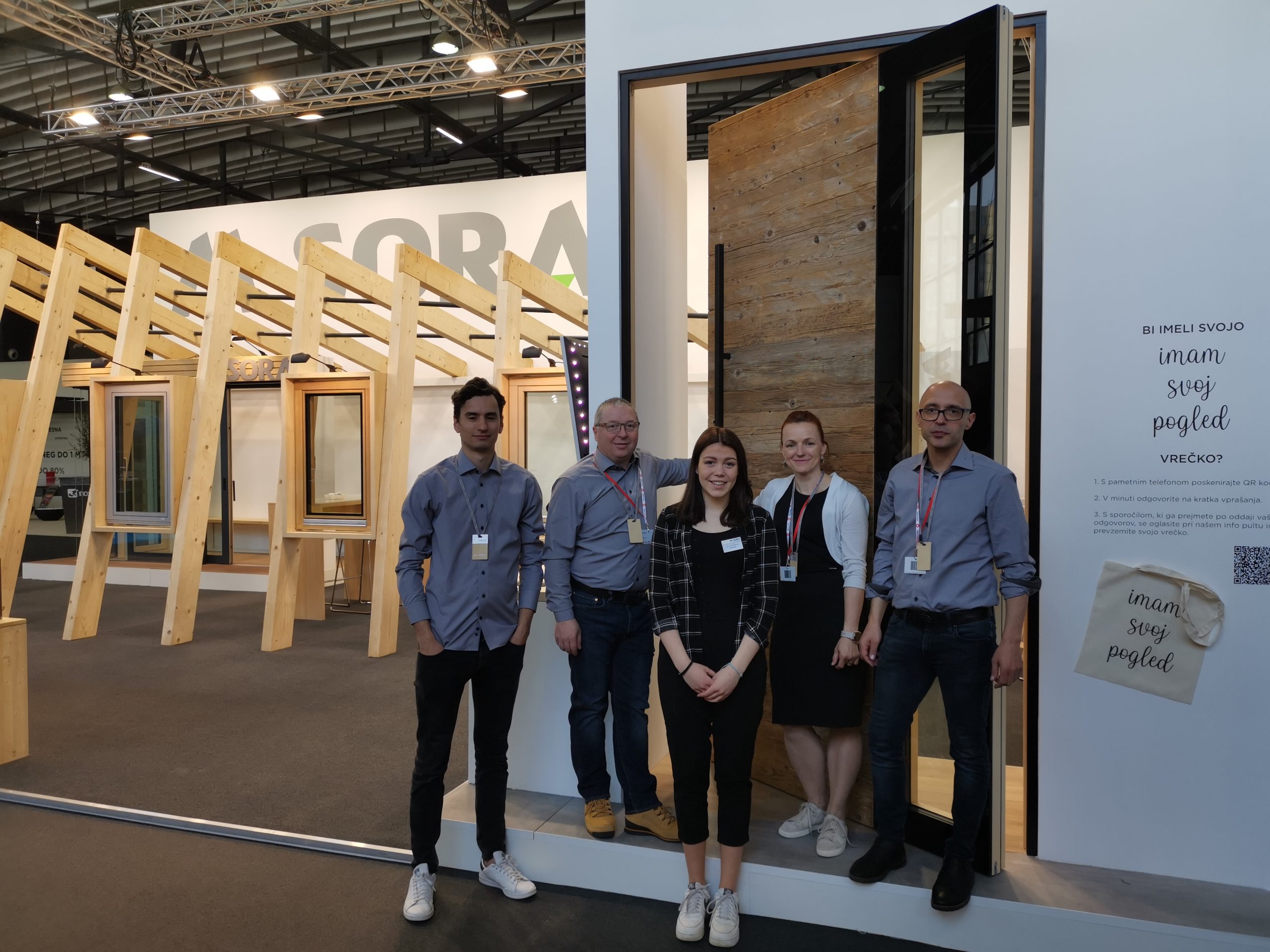 Najbolj občudovana med našimi izdelki so bila letos zagotovo pivot vhodna vrata. Vrata so čudovita, moderna in hkrati rustikalna, odpirajo in zapirajo se brezhibno, v njih pa se skrivajo vse naše vrednote. Drznost izgleda in izvedbe, upoštevanje zdrave kmečke pameti, da smo se znali ustaviti pri višini 3m in ne pri 5m, in pri širini 1,6m in ne 2m, čeprav vemo, da bi jih prav tako znali narediti, spoštovanje in upoštevanje modernih trendov in želja naših kupcev ter pripadnost vseh zaposlenih, ki so skonstruirali, zdizajnirali in izdelali vrata ter poskrbeli, da na sejmu res sijejo.