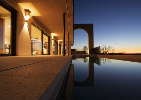 Pri dvižno drsnih stenah PANORAMIC steklo v fiksnem delu poteka vse do tal. Z uporabo te stene še dodatno pridobimo na večji količini svetlobe, poleg tega pa ima stena tudi minimalističen estetski učinek.
