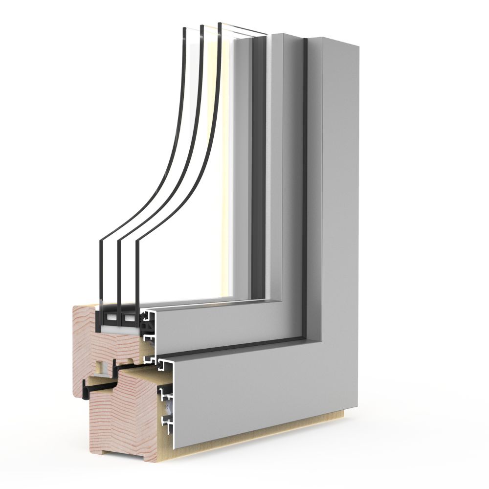 Univerzalno les-alu okno s troslojno zasteklitvijo in kvadratnimi linijami. Višja energijska učinkovitost, tišje okolje in sodoben videz. Zunanja aluminijasta obloga ne zahteva zahtevnega vzdrževanja, notranji les pa ohranja naravno toplino. Smiselna izbira za širok nabor stanovanjskih in poslovnih objektov.