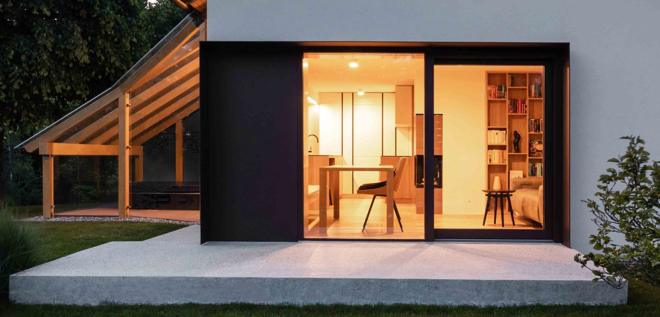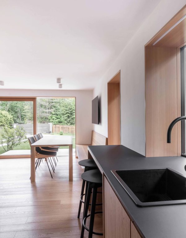 Hiša, umaknjena v naravo pohorskih gozdov, je bila zgrajena v devetdesetih letih prejšnjega stoletja. objekt je imel kompaktno tlorisno zasnovo, prostore z majhnimi okenskimi odprtinami in dolgotrajno opremo. Investitor si je želel hišo posodobiti, povezati z okolico in približati sodobnemu načinu bivanja. Prenova hiše stremi k povezavi notranjega bivalnega prostora z zeleno okolico znotraj katere je hiša umeščena. Majhna kvadratura s premišljeno zasnovo omogoči razkošno in udobno življenje v hiši, ki ima ravno prav vsega kar potrebujemo. (Vir: OHS, foto: Matic Škarabot)