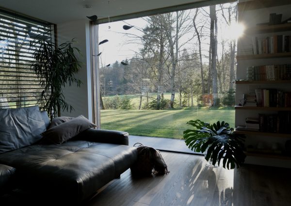 Pritlična montažna hiša na Gorenjskem združuje sodobno arhitekturo in naravo. Ključna značilnost so panoramske zasteklitve od tal do stropa, brez vidnih okvirjev, poravnane s fasado, kar ustvarja čist videz in omogoča popolno povezavo z okolico. Velike steklene površine prinašajo obilico naravne svetlobe in odpirajo poglede na gozd, medtem ko topla macesnova okna zagotavljajo vrhunsko izolacijo in domačnost. Arhitektura temelji na brezčasnih linijah, naravnih materialih ter prostornem tlorisu brez stopnic, ki omogoča udobno bivanje v vseh življenjskih obdobjih.