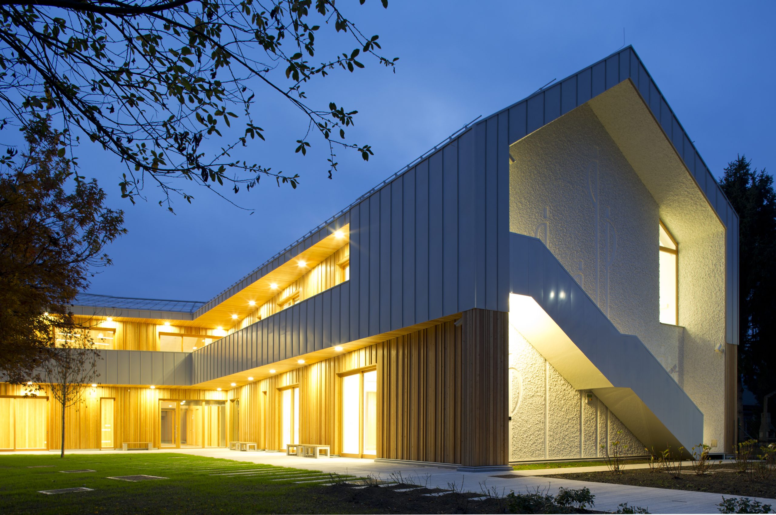 V Varstveno delovnem centru INCE izvajajo socialno varstveno storitev vodenja, varstva in zaposlitve pod posebnimi pogoji in institucionalno varstvo oseb z zmerno in težjo motnjo v duševnem razvoju. Stavba se nahaja ob potoku na podolgovatem zemljišču. Njena zasnova sledi tipologiji vaškega jedra in organiziranosti starih domačij, z delitvijo na gospodarsko dvorišče ob cesti in zasebni vrt ob potoku. Uporaba tipičnih elementov tradicionalne gradnje v Sloveniji, „gank“ – balkon, les, napušči in dvokapna streha, omilijo velikost stavbe in jo približajo merilu okoliških hiš. Razgibana oblika dvokapne strehe združuje objekt v celoto. (Vir: OHS, foto: Blaž Budja)